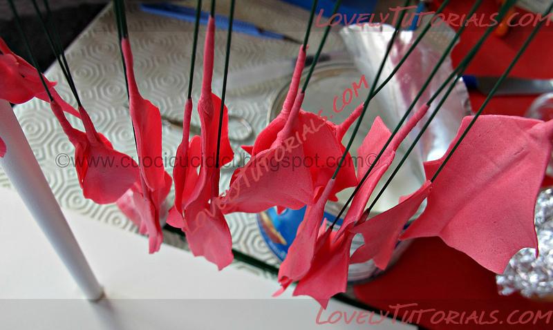 Insert the wire in the petals (the midpoint where thanks to the cell board have more gum paste)