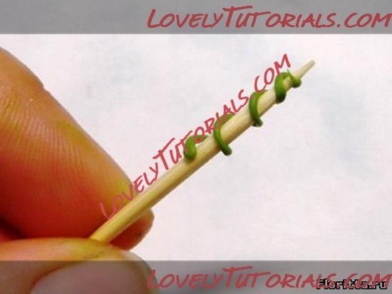18. Теперь снимите бутон с треугольниками с зубочистки. Слепите вместе нижние стороны треугольников и покатайте между пальцами, чтобы они приняли форму стебля.
