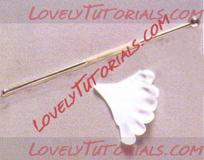 Вот что нам понадобится. Стебелек сразу делаем с тычинкой (он нижний на картинке). Тычнику (маленький кусочек белой массы) накатываем на проволку, разрезаем кончик ножничками и обматываем тейп лентой.