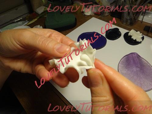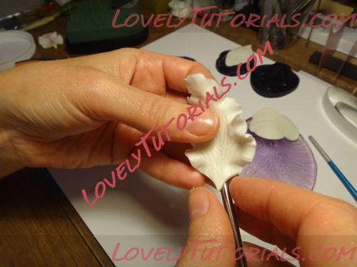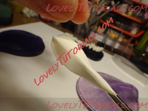Далее стеком с лапкой совершенствуем края,делая лепесток объемнее и снова загибаем край, отпраляем сушиться, то же самое повторим с двумя другими лепестками.