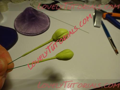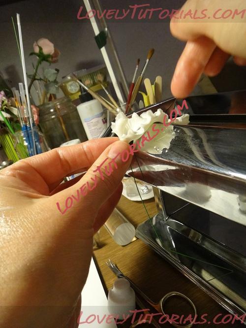 Готовую серединку,промажем клеем и аккуратно прижмем к пестику, поправим стеком и отправляем его сушиться.