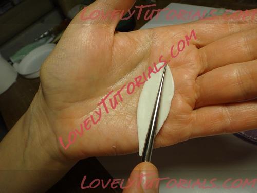 Берем стек с лапкой и открая к серединке вниз проводим, делая выпуклость серединки объемнее, самый кончик загибаем и отправляем его сушиться.