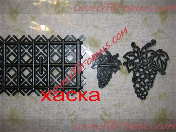 Виноград сначала покрывала так же коричневой краской. Дала просохнуть, затем прошлась сухим кандурином под бронзу.