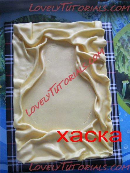 Мастику взяла не удачно. Что то не подумала. Мастика покупная цветочная. Она абсолютно не подходит для обтяжки. Со временем становится мягкой и течет. Здесь этого не произошло, только потому, что лежит на горизонтальной поверхности и собрана складками.