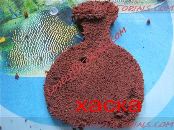 Поэтому я ее изнутри обмазала не шоколадом, как обычно, а кремом. Наполнила тортом панчо. Сверху уложила вырезанный из куска бисквита пласт по форме бутылки.