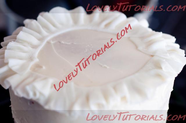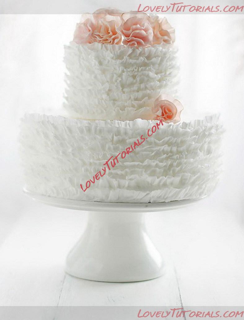 I had a request for a wedding cake that had little ruffles applied to the cake upside down, which makes them fall away from the cake and gives a pretty, frilly effect.