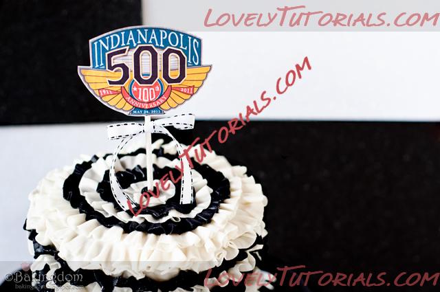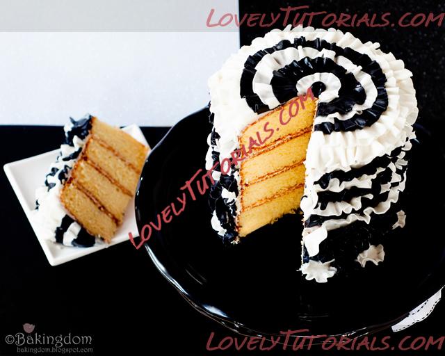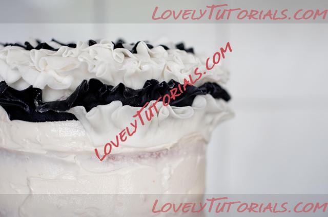 You'll have to play with the frills to make sure that they don't stick to the cake at the top of the strip. Use the pointed end of a craft stick to manipulate them into going where you want them to be. Gravity will help you with this since it will pull the ruffles away from the cake if the top edge isn't stuck to the cake.