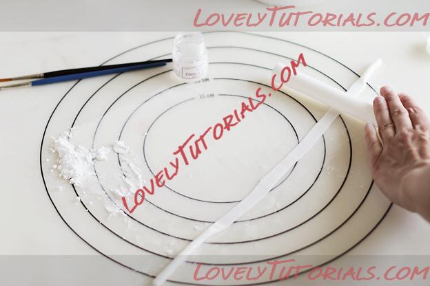 Keep the dowel dry, and wipe it clean with a paper towel if it picks up fondant. I kept sticking it into a container of corn starch to keep it from sticking.