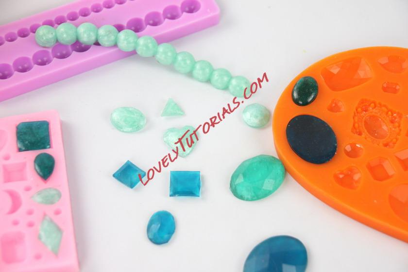Create some decorative stones by adding more of the blue to the gel to make darker jewels. You could even add some metallic paint to create a shimmery effect as shown in the picture.