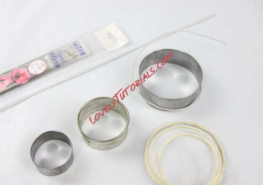 Using the round cutters as a guide, wrap the floral wire around the cutter to form a circle shape and then secure together using white floral tape.