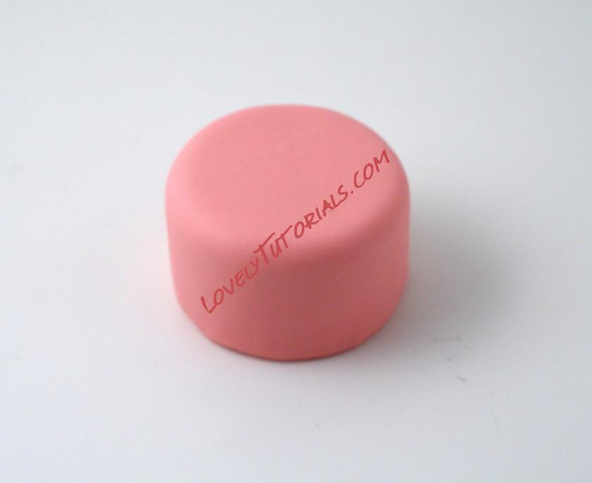 Dopo aver creato la base della minicake rivestila con della pasta di zucchero rosa.
