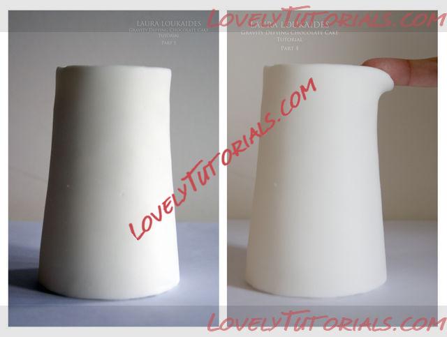 Finally, cut a circle of white fondant and apply to the jug, smoothing the edges to create a seamless effect.