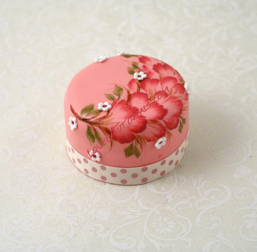 Dopo aver creato la base della minicake rivestila con della pasta di zucchero rosa.