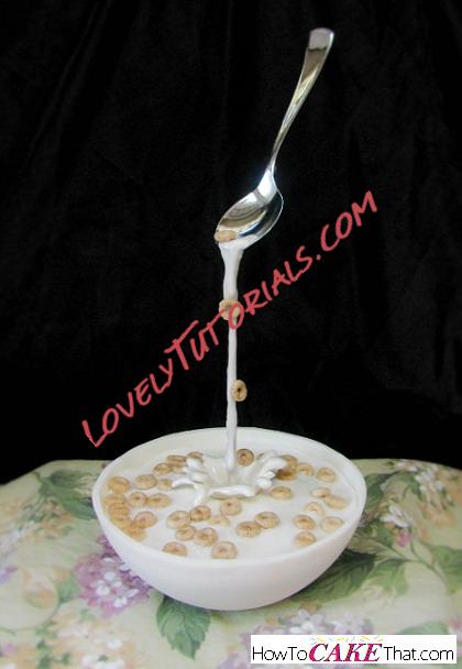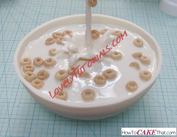 And the final touch... add cereal bits directly to the corn syrup glaze. The glaze will act as a glue and cereal will stick directly to the glazed fondant milk.