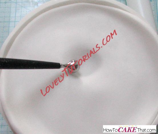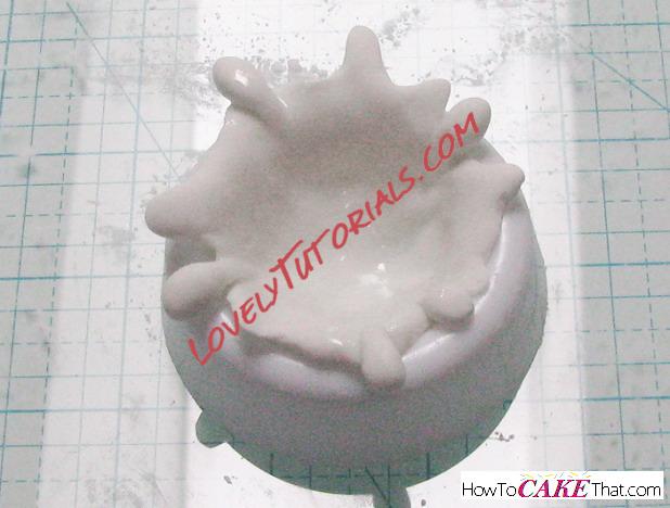 Using your finger or a metal ball tool, press the fondant into the hole cut out for the splash.