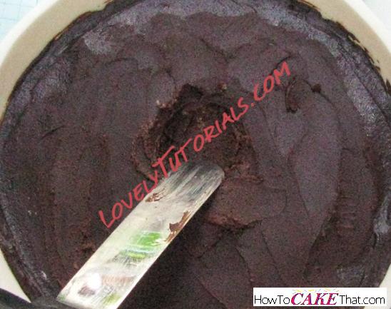 After cake has refrigerated for 30 minutes and frosting is hard, remove from refrigerator and plan where you'd like your splash to sit. Choose a spot near the middle - a small skewer will be inserted through the splash and into the cake... and to keep the skewer from poking out of your bowl, it must be near the center of the bowl. Using a small teaspoon, scoop out a shallow hole for your splash to sit. Remember, when pouring liquid into a liquid, the beginning of the splash sits slightly below the surface of the sitting liquid. (Geez! That's confusing! I hope you guys get what I'm trying to say there)