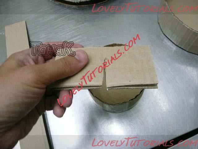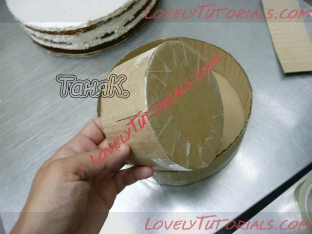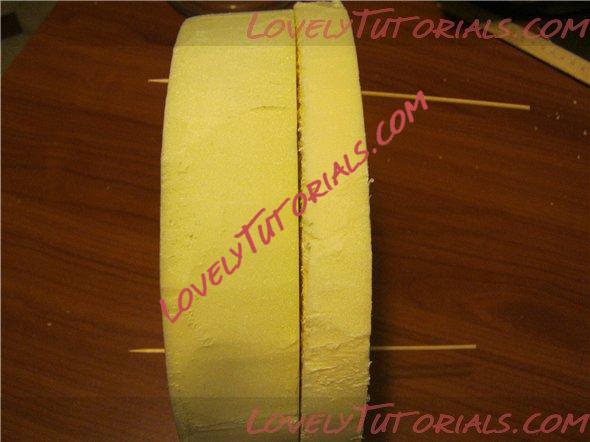 Теперь берем нашу основную подставку под торт, где так же очерчен контур болванки и вернув болванку на место, совмещаем обведенный контур с самой болванкой.