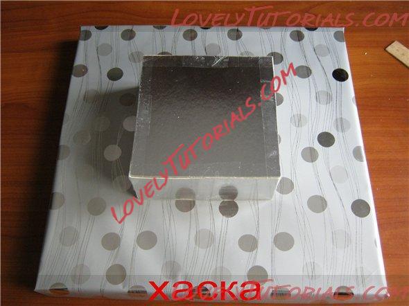 Захотелось попробовать сделать подставку для квадратного торта. Это оказалось еще проще. Так как округлостей никаких нет, то боковую часть подставки отделала подложкой от Лили, предварительно нарезав ее по длине 15см и высоте 6 см (высота торта в готовом виде), по всем четырем сторонам подставки. Сверху подставка покрыта такой же подложкой. Скрепила все при помощи скотча. По всем граням соединения прошлась полностью скотчем. Вот что у меня получилось. Маленький квадрат посередине основной подставки - это и есть подставка для маленького яруса торта.