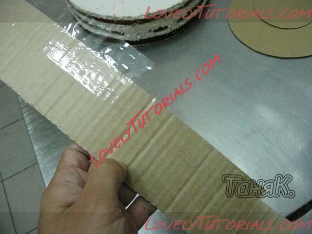 Длинная полоска картона - это вкладыш в коробку из-под конфет (мне проще - хожу в фасовку и выбираю коробки, какие надо, договорилась с фасовщицами - они мне эти вкладыши оставляют). Можно использовать просто полоски картона, главное, чтобы рёбра картона были поперёк этой полосы, иначе нормально не сгибается. Высота бортика каркаса равна или чуть меньше высоты тортовой заготовки. Высота рёбер жёсткости в каркасе на 0,5см меньше высоты бортика каркаса.