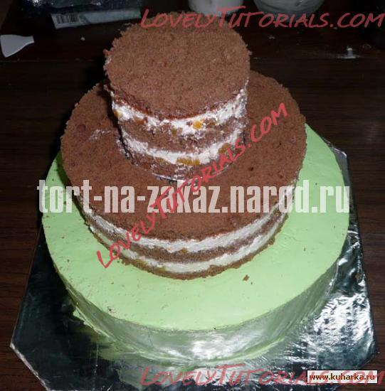 Все торт собран. Нижний ярус вокруг подставки – болванки остался целым и невредимым.