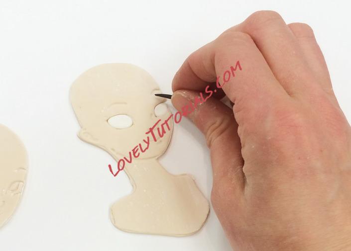 I added eyes into the imprint, but on one of the samples I cut out the eyes and filled them with white fondant.