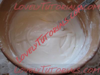 4. В конце вы должны получить плотную белковую смесь. (смесь можно делать гуще или жиже, в зависимости от желаемого результата: густая смесь - используется для покрытия тортов, более жидкая смесь - для рисования и выведения различных рисунков)