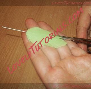 На губке или специальном мате прокатываем округлым стеком или маленьким стеком-шариком у основания надреза, чтобы немножко «распушить» и расправить мелкие листики.