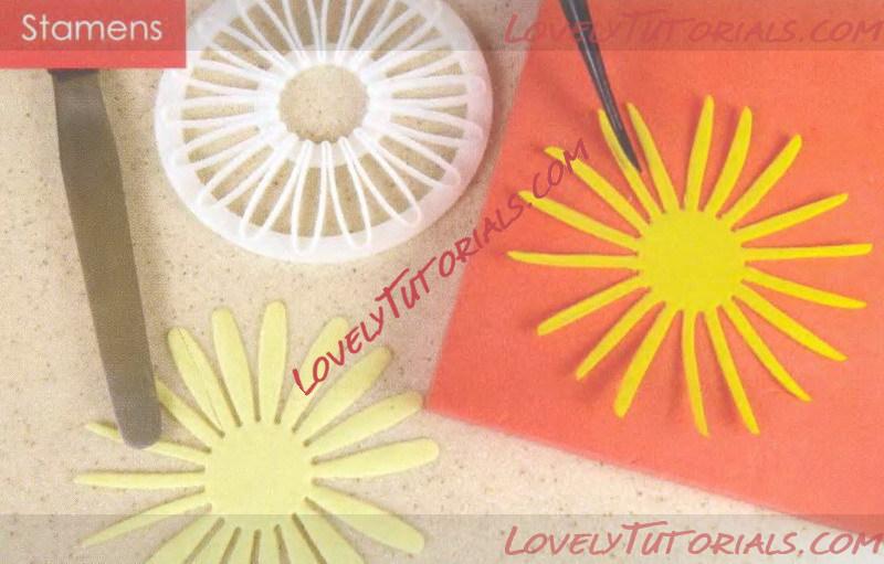 3Repeat step 2 but do not close up the stamens as much. Whilst damp, dust with lemon and add a touch of kiwi in the centre at the top.