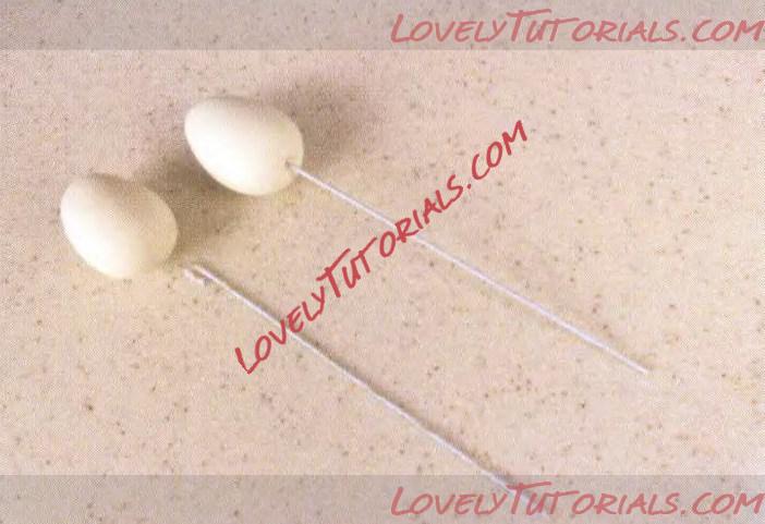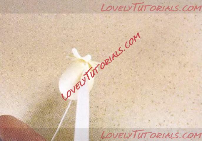 9 Roll cream paste into a short cone. Carefully heat the end of a hooked 20g wire in a gas or candle flame until it glows white. Push the wire into the base of the cone and reshape it.