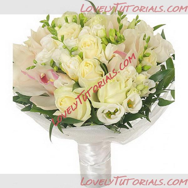 розы, эустомы, фрезии, орхидеи, декоративная зелень