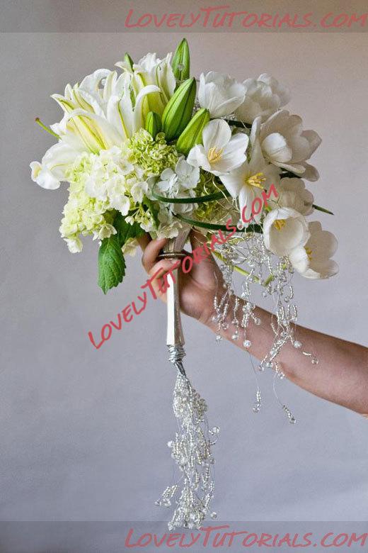 розы, фрезии, декоративная зелень, портбукетница